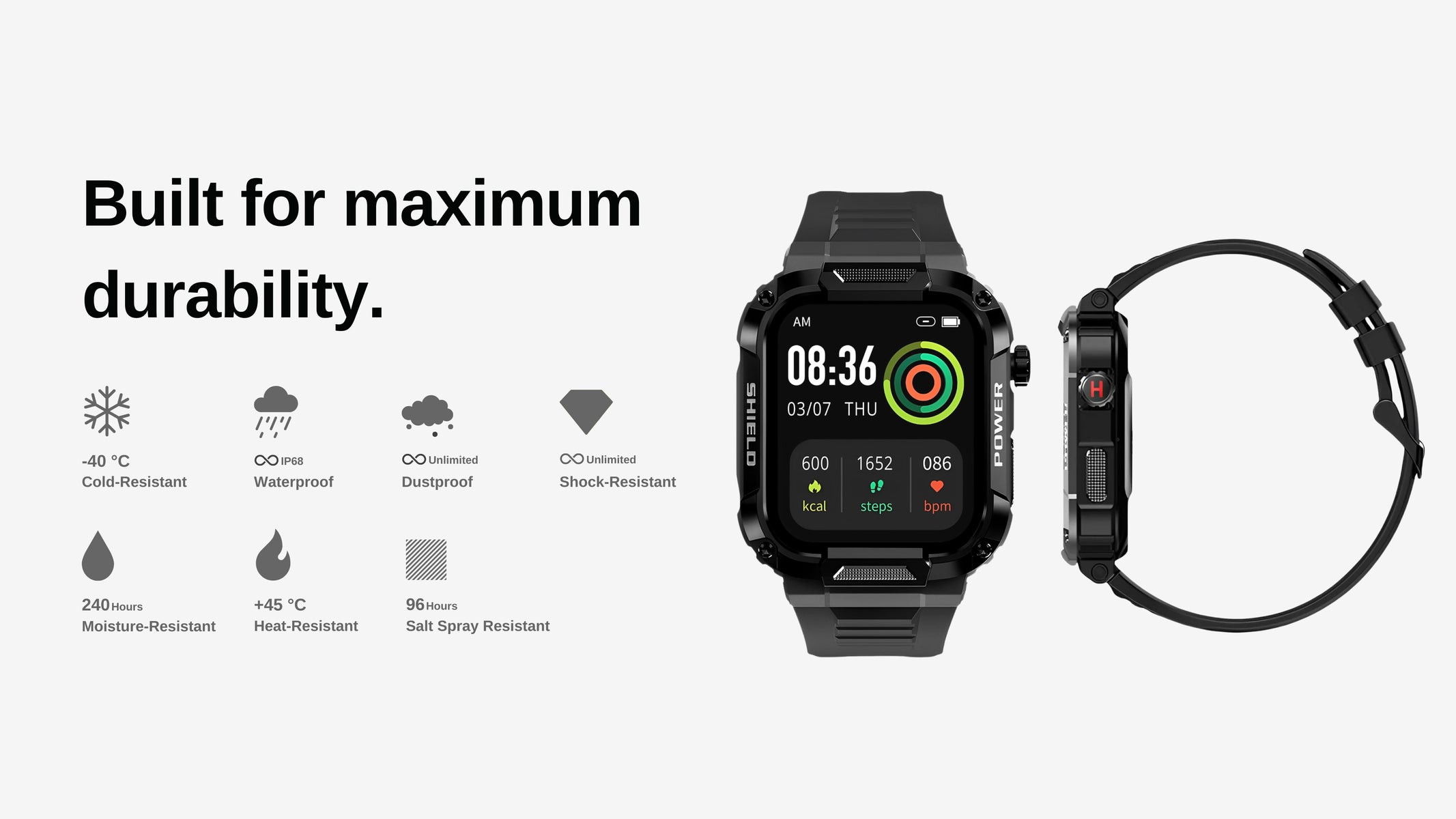 We created the strongest smartwatch in the industry. Ready to withstand the most extreme work and sports conditions. Stronger than the competition and half the price.